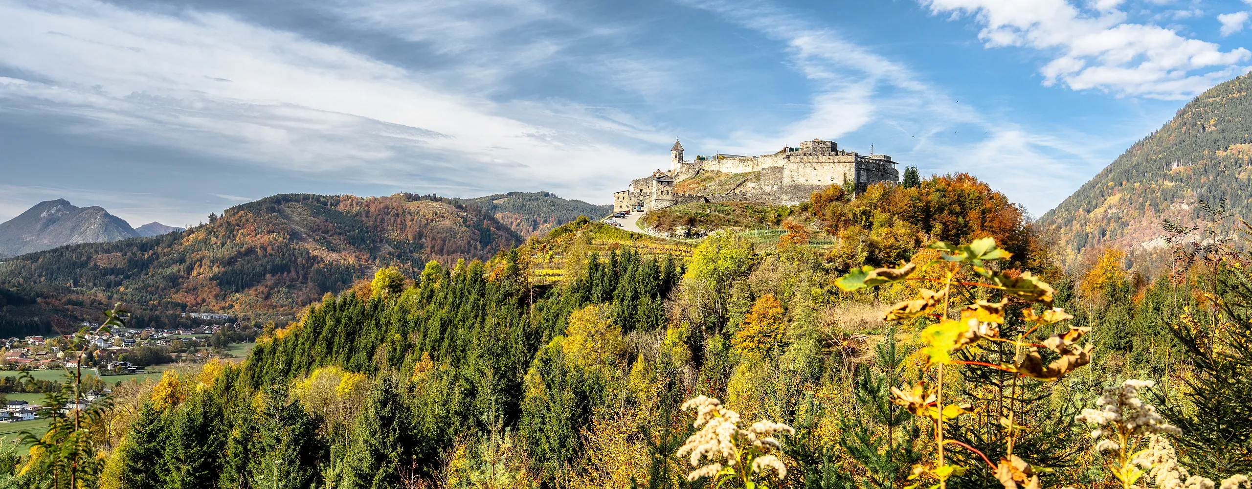 Mit dem Mountainbike: Von Gratschach mit dem Mountainbike zur Burg Landskron. Hier finden Sie eine Tourenbeschreibung.