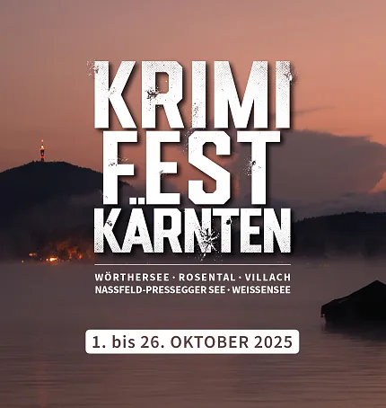 Faszination Verbrechen an 29 Tatorten in der Region Wörthersee-Rosental und in Villach. Vom 1. bis 26. Oktober 2025 lesen erneut 30 international renommierte Krimiautor:innen aus ihren Werken“. Auch 2025 wird der Österreichische Krimipreis wieder offiziell im Rahmen des Krimifest Kärnten in Villach verliehen.