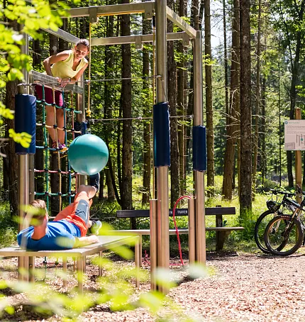 Für die Einen ist es eine Laufrunde, für die Anderen ein schöner Spazierweg. Viele Kinder haben hier das Radfahren erlernt und man kommt direkt mit der Natur in Berührung. Selbst aus der nahen Stadt Villach kommen Viele, um dieses Kleinod zu nützen und zu erleben. Auf die Besucher:innen warten Stationen für Ausdauer, Geschicklichkeit, Kraft und Dehnung.