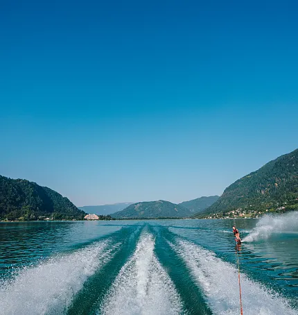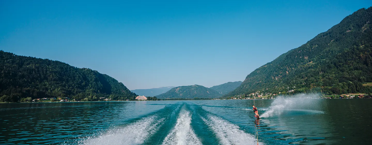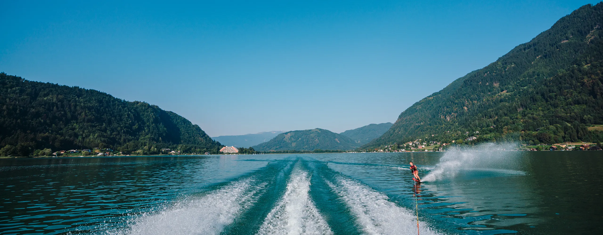 Am Ossiacher See wartet Wassersportvergnügen vom Feinsten: Wo Motorbootfahren erlaubt ist, bieten sich zahlreiche Möglichkeiten, ob klassisches Wasserskifahren, actionreiches Wakeboarden oder ein ausgelassener Ritt auf Banane, Reifen & Co. – hier spüren Sie den Sommer auf der Haut.