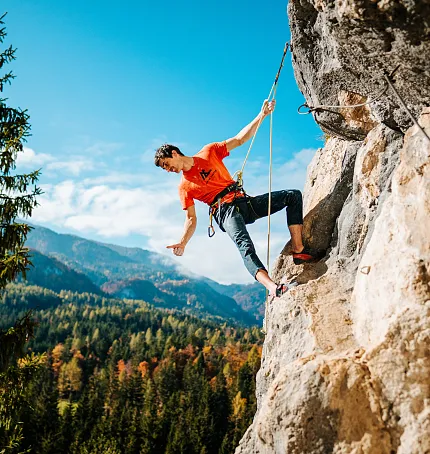 The rocks are compact, well-structured and reach heights of up to 70 meters. The Kanzianiberg impresses with a 700 meters long limestone wall and more thant 300 sport climbing routes, so there is something suitable for every climbing level.