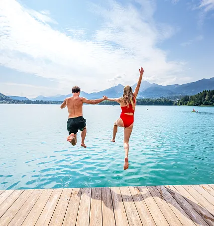 In addition to the chargeable public bathing complexes, in the Villach - Faaker See - Ossiacher See region we also offer some possibilities for you to take a quick, refreshing dip free of charge. There are free of charge lake access points on nearly every lake, allowing you to take a short, refreshing plunge into the water without having to pay.