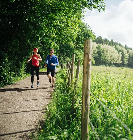 La rete di percorsi della Running & Trail Running Arena offre sette percorsi selezionati per la corsa e il trail running con una lunghezza totale di oltre 50 chilometri. Che siate ambiziosi corridori per hobby, esperti di trail running o curiosi principianti, qui c'è la sfida giusta per tutti. Naturalmente, i percorsi sono adatti anche agli appassionati di nordic walking. Lo spettacolo naturale multiforme incontra un'esperienza di corsa versatile! Che si tratti di un atleta professionista con un piano di allenamento personale, di un ambizioso atleta amatoriale o di un principiante assoluto della corsa con una grande dose di curiosità: grazie allo speciale sistema di guida dei diversi e variegati percorsi di corsa e trail running, ogni atleta troverà il suo percorso ideale.